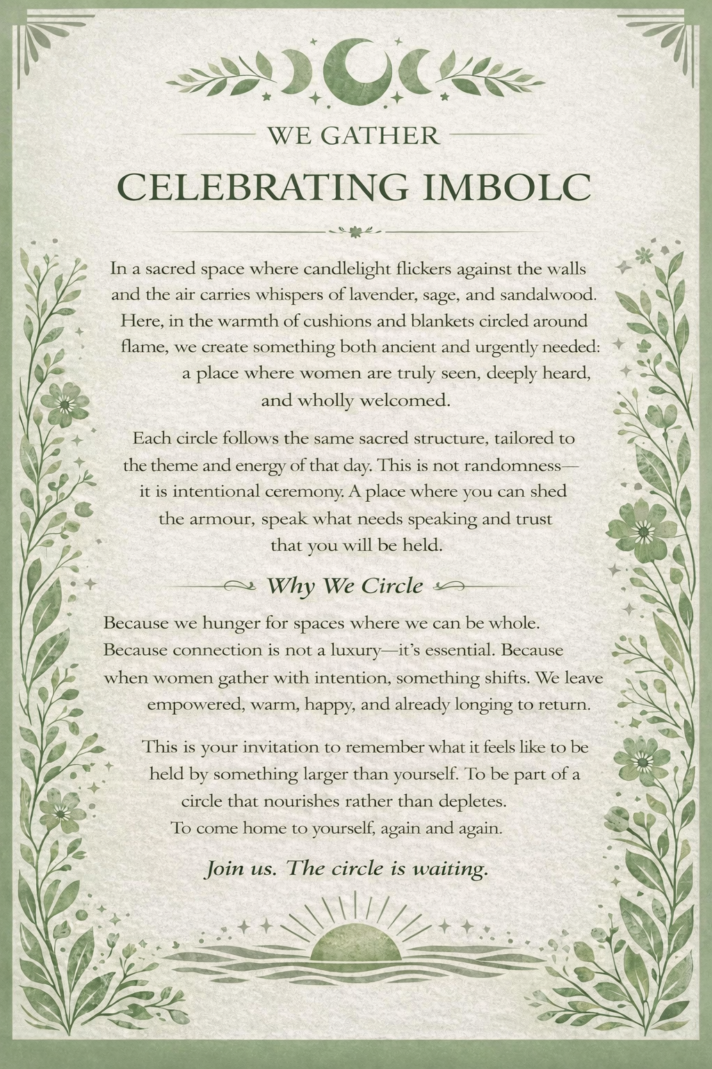 JOIN US, THE CIRCLE IS WAITING…